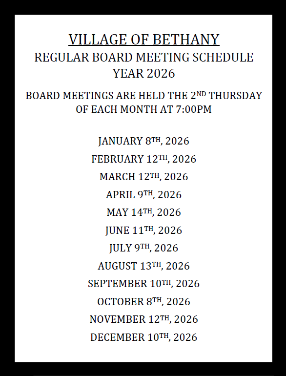 ALL MEETINGS ARE HELD AT THE BETHANY VILLAGE HALL: 201 W MAIN ST, BETHANY, IL 61914